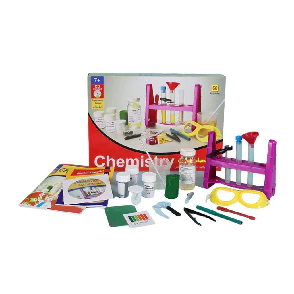 • تحتوي هذه المجموعة الخاصة بالكيمياء على كل الأدوات اللازَّمة للقيام بأكثر من 60 تجربة.