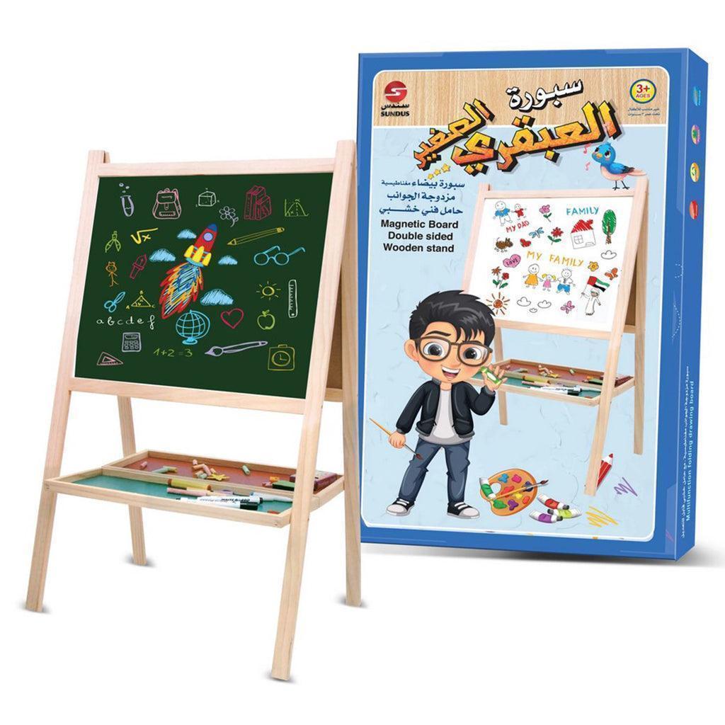 تم تصميم سبورة العبقري الصغير من سندس لتكون على الوجهين سبورة طباشير ولوحة بيضاء. سيوفر هذا التصميم المطور العديد من الخيارات للإبداع ويسمح أيضًا لاثنين من الفنانين الناشئين بابتكار تحفهم الفنية في نفس الوقت. ممتعة وتعليمية