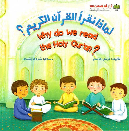 كتاب "لماذا نقرأ القرآن؟" باللغتين العربية والإنكليزية. قال رسول الله صلى الله عليه وسلم: "خيركم من تعلم القرآن وعلمه". يتساءل الأطفال دائماً عن أمور عديدة تشد انتباههم وتثير عقولهم، فتأتي هذه القصة لتلبي هذا الفضول وتبني وتـ وتبن لديهم المفهوم الصحيح للقرآن، فتتدرج معهم في تبسيط المعلومة وايصال الفكرة بطريقة شيقة ورسومات جذابة لتبني في نفوسهم حب القرآن وتزرع فيهم تعظيمه وتحثهم على تلاوته وتفهم معانيه وحفظه والعمل به ليكونوا مع الملائكة الكرام البررة. أي فوز أعظم من أن يكون صديق طفلك الأول كلام رب العالمين، القرآن الكريم.