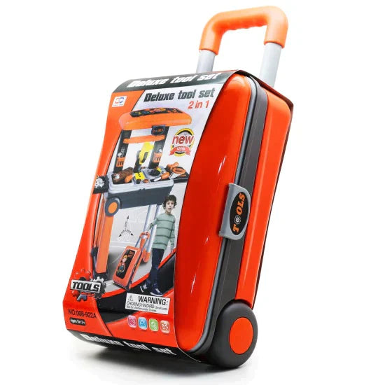 2 in 1 Deluxe Tool Play Set, Pretend Play Luggage Tool Kit for Kids with Suitcase Trolley, 46 Accessories