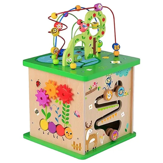 - مكعب النشاط مزود بأنشطة متنوعة يساعد على تطوير المهارات الحركية لدى الطفل.